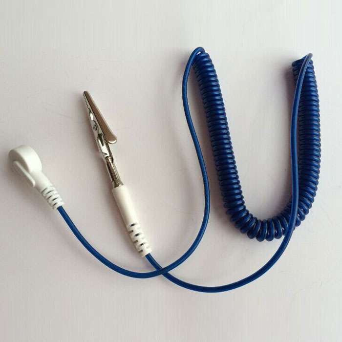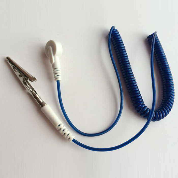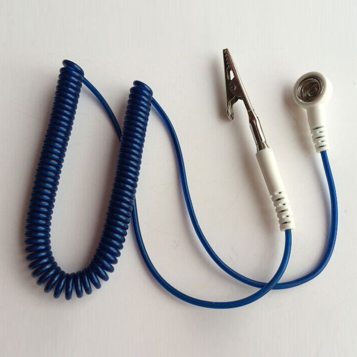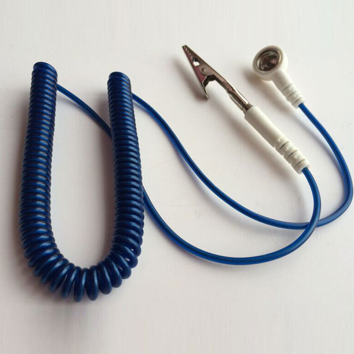 The coil grounding cord is designed to use with wrist strap or connect to ESD mat or earthing plate to drain away static discharge protecting electronic sensitive devices from static discharge. Apply in circuit production or assembly line, CMOS chip, microprocessor, semiconductor, dish drivers, composites, LCD screen product, precision instrument, optics part and so on.