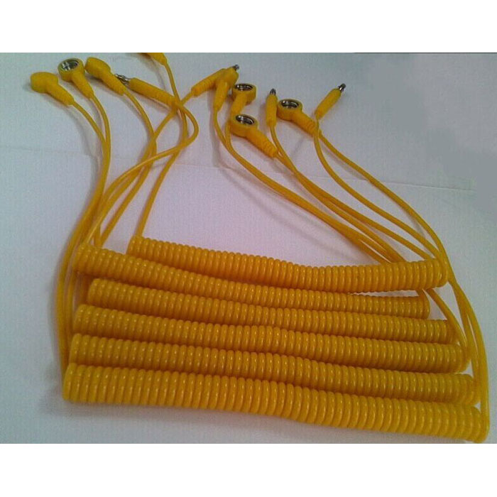 The coil grounding cord is designed to use with wrist strap or connect to ESD mat or earthing plate to drain away static discharge protecting electronic sensitive devices from static discharge. Apply in circuit production or assembly line, CMOS chip, microprocessor, semiconductor, dish drivers, composites, LCD screen product, precision instrument, optics part and so on.