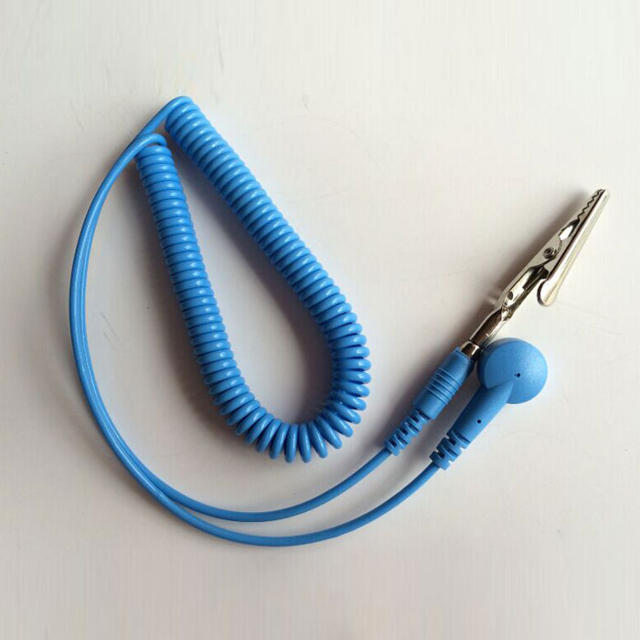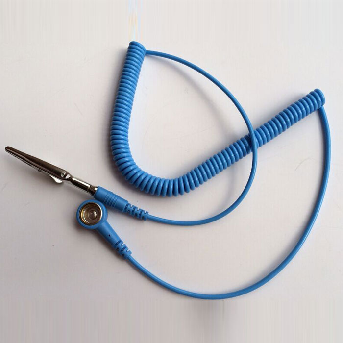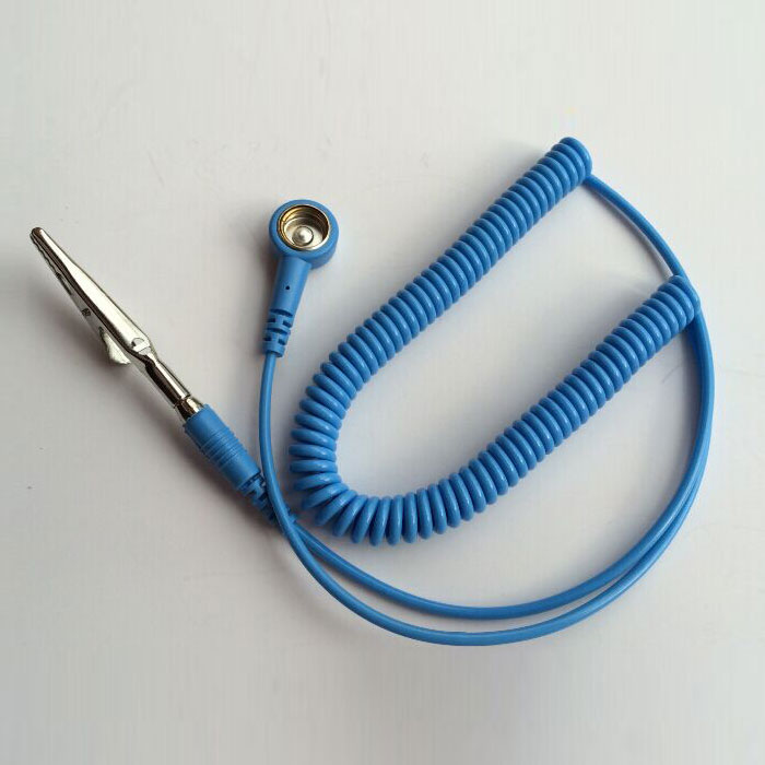 The coil grounding cord is designed to use with wrist strap or connect to ESD mat or earthing plate to drain away static discharge protecting electronic sensitive devices from static discharge. Apply in circuit production or assembly line, CMOS chip, microprocessor, semiconductor, dish drivers, composites, LCD screen product, precision instrument, optics part and so on.
