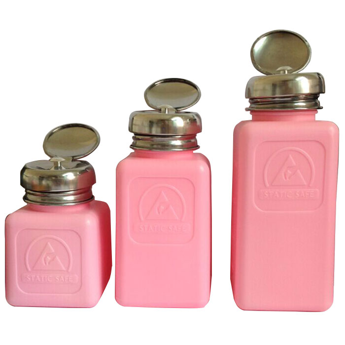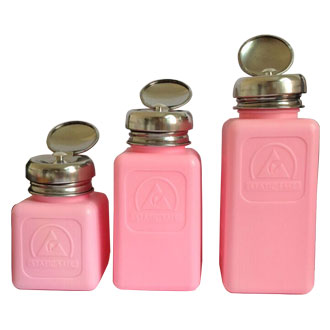 Antistatic Dispenser Bottle is designed to dispense liquid applied with a swab, wipe or cotton ball. The Antistatic Dispenser Bottle is available with stainless steel parts to facilitate the use of aggressive solvents.