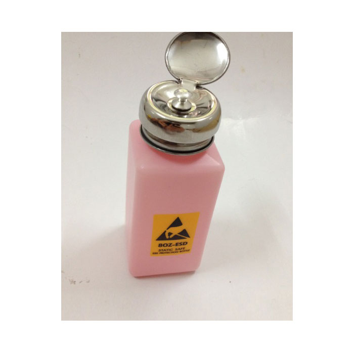 Antistatic Dispenser Bottle is designed to dispense liquid applied with a swab, wipe or cotton ball. The Antistatic Dispenser Bottle is available with stainless steel parts to facilitate the use of aggressive solvents.