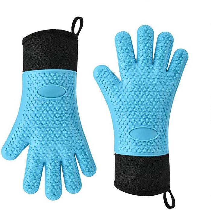 Features: * Textured silicone surface provides good grip and durability * Protects hands from hot steam and water * Thick liner for heat protection and comfort * Long cuff protect forarms * Loops allow easy hanging * Easy to clean