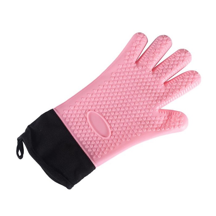 Part number: CS1138 Outer material: Silicone Liner: Cotton / terry / velvet / wool Cuff material: Cotton Silicone pattern: dot, heart shape Size: 7(S)-11(XXL) Logo: sew at side or bottom Performance level: EN407 Application: BBQ, baking, cooking etc..