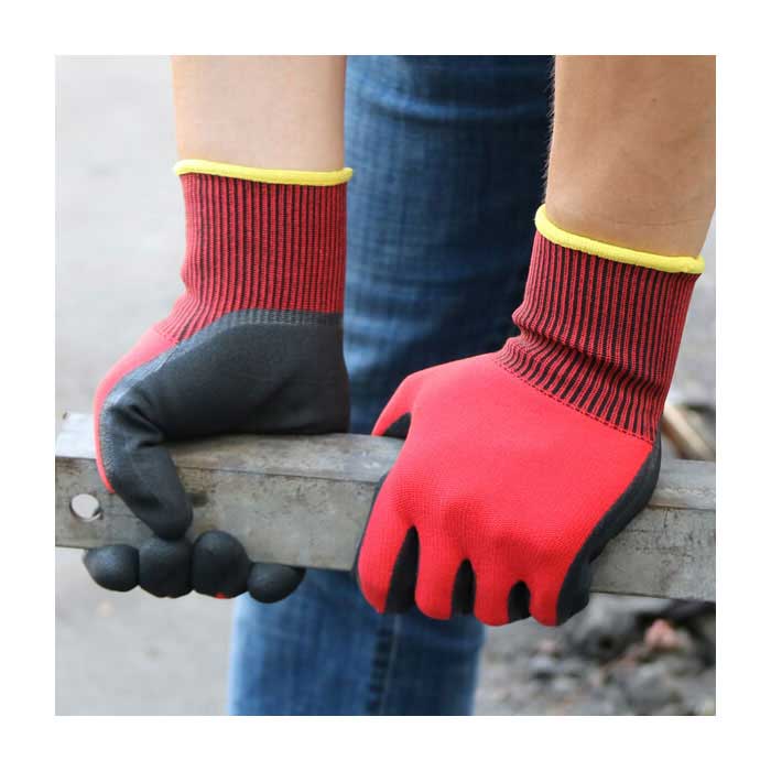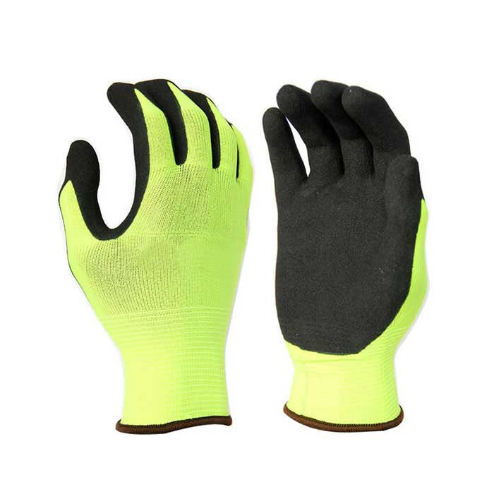 Polyester or nylon latex coated work gloves are manufactured from polyester or nylon yarn, and coated with latex. Machine knitted shell delivers dexterity, flexibility, breathability and comfort. Latex coating provides excellent grip and is resistant to snags and abrasions. Sandy finish channels oil away for a superb grip in light oil applications. These gloves are the perfect choice for construction, garden, wood processing, logistic, auto repair, agriculture, etc..