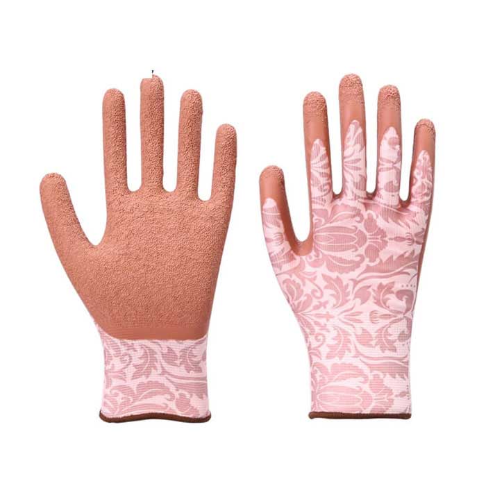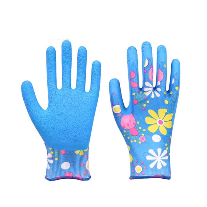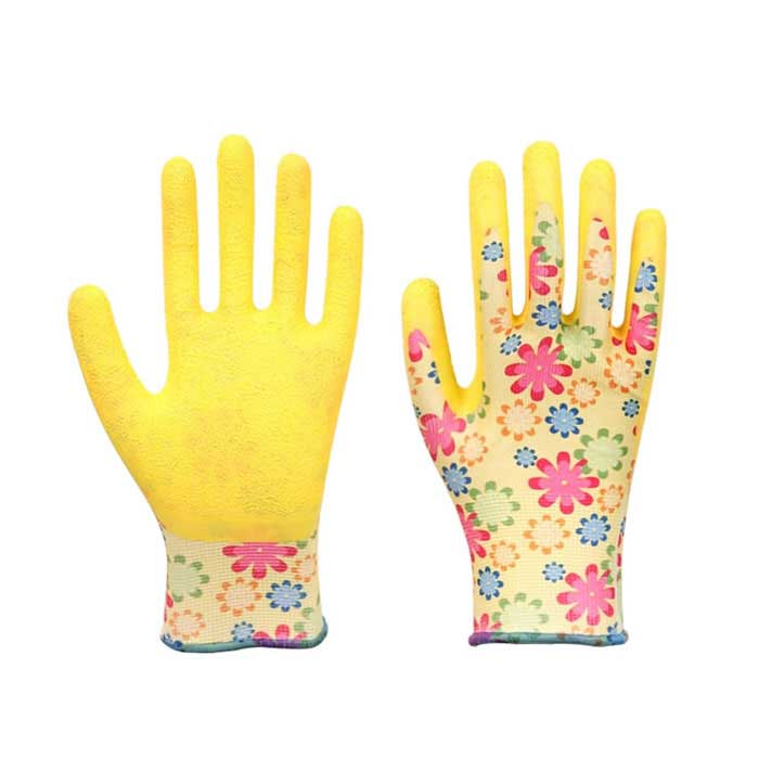 Printed polyester latex coated gardon work gloves are manufactured from polyester, and coated with latex. Machine knitted shell delivers dexterity, flexibility, breathability and comfort. Latex coating provides excellent grip and is resistant to snags and abrasions. Crinkle finish provides better grip. These gloves are the perfect choice for construction, garden, wood processing, logistic, auto repair, agriculture, etc..