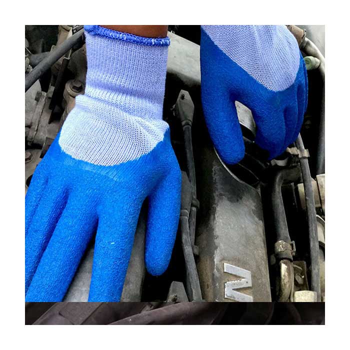 Polyester/cotton latex coated work gloves are manufactured from blended polyester/cotton, and coated with latex. Machine knitted shell delivers dexterity, flexibility, breathability and comfort. Thick blended polyester/cotton yarn is suitable for heavier job hand protection. Latex coating provides excellent grip and is resistant to snags and abrasions. Crinkle finish provides better grip. Half coated enhances water resistance. These gloves are the perfect choice for construction, garden, wood processing, logistic, auto repair, agriculture, etc..