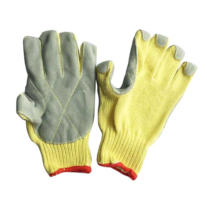 Aramid + split cowhide cut resistant gloves are manufactured from aramid yarn and with split cowhide sewed on palm. Aramid yarn, posses cut, flame and abrasion resistant. Split cowhide leather deliver puncture resistance and improves abrasion resistance. Reinforced leather crotch thumb saddle enhances durability at a critical wearing point. Aramid stitching maintains heat & flame resistance and strengthens the glove. These gloves are idea for application requiring the handling of objects with sharp and jagged edges such as glass and metal.