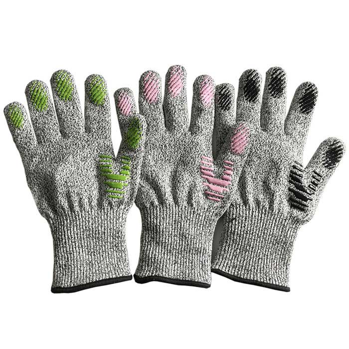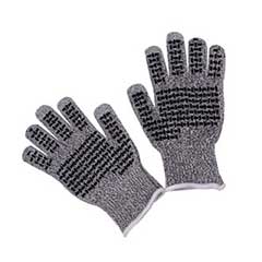 HPPE+ PVC dotted cut resistant gloves are manufactured from HPPE yarn and dotted with PVC. HPPE is 10 times more powerful than high-quality steel. PVC dots provide excellent grip in light oil applications and more protection from abrasions. These gloves are idea for application requiring the handling of objects with sharp and jagged edges such as glass and metal.