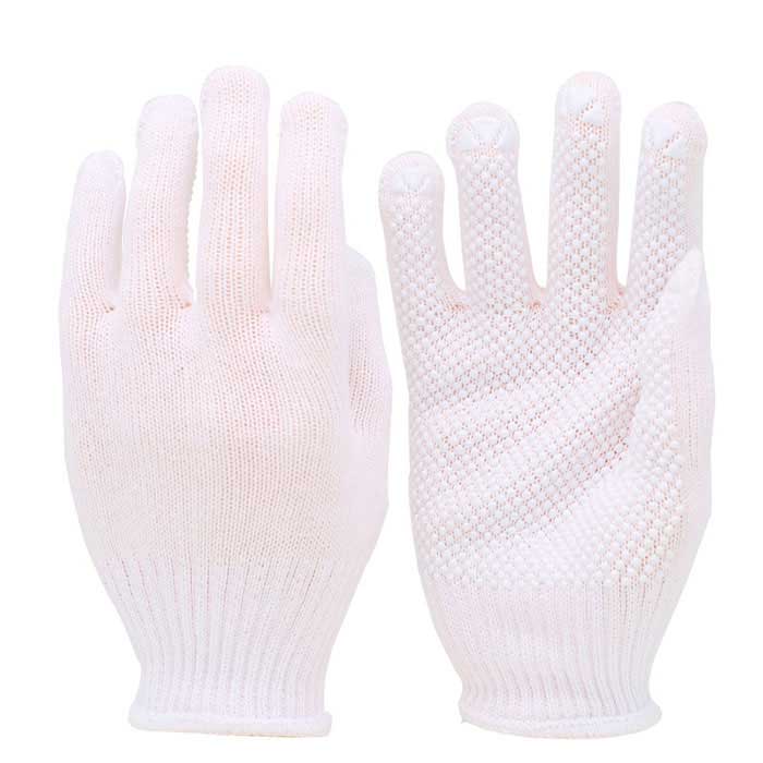 Manufactured from 100% cotton, the gloves deliver form-fitting and breathable comfort. PVC dots on one side or both sides for better grip. They feature a knitted wrist with a colored overedge to provide a visual aid in sizing. This style is reversible, lengthening the life of the glove and facilitating ease in sorting after laundry. They are ideal for use in general maintenance, packaging, inspection, material handling, assembly, shipping, and receiving.