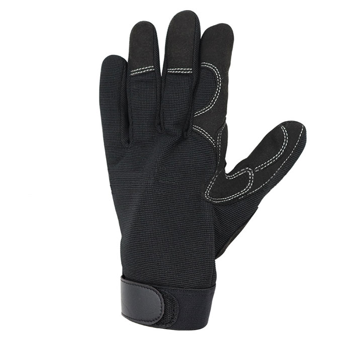 These mechanic gloves are manufactured from comfort-enhancing spandex at back and synthetic leather at palm. Synthetic leather padding absorbs impact and vibration. Reinforcement panels in high wear areas for increased durability. Elastic cuff for best fit. Hook and loop closure at wrists. These gloves are used widely in oil production, petrochemical industry, mining industry, machinery, gardening and construction…etc.