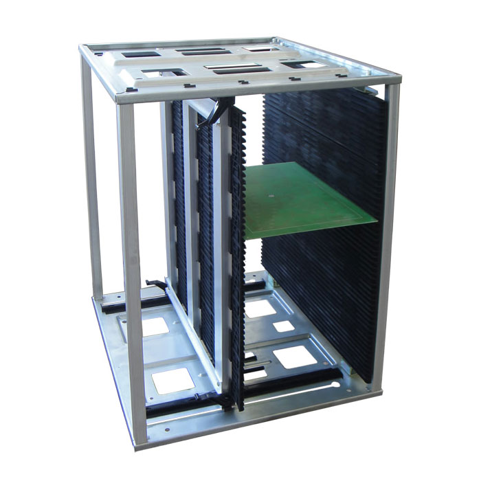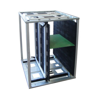 SMT magazine rack is designed for the manufacture, assembly, storage and transfer of PCB. Usually with antistatic plastic base or stainless metal base. There are screw and gear adjustment, screw adjustment type for long-term PCB width set up, gear adjustment for frequent PCB width adjust. Common type (80℃) and heat-resistant type(120℃, 230℃) are available.