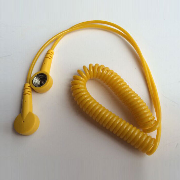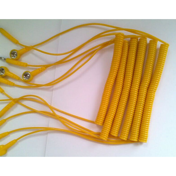 The coil grounding cord is designed to use with wrist strap or connect to ESD mat or earthing plate to drain away static discharge protecting electronic sensitive devices from static discharge. Apply in circuit production or assembly line, CMOS chip, microprocessor, semiconductor, dish drivers, composites, LCD screen product, precision instrument, optics part and so on.