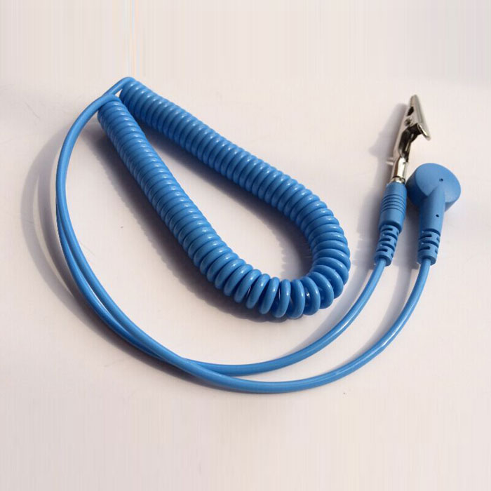 The coil grounding cord is designed to use with wrist strap or connect to ESD mat or earthing plate to drain away static discharge protecting electronic sensitive devices from static discharge. Apply in circuit production or assembly line, CMOS chip, microprocessor, semiconductor, dish drivers, composites, LCD screen product, precision instrument, optics part and so on.