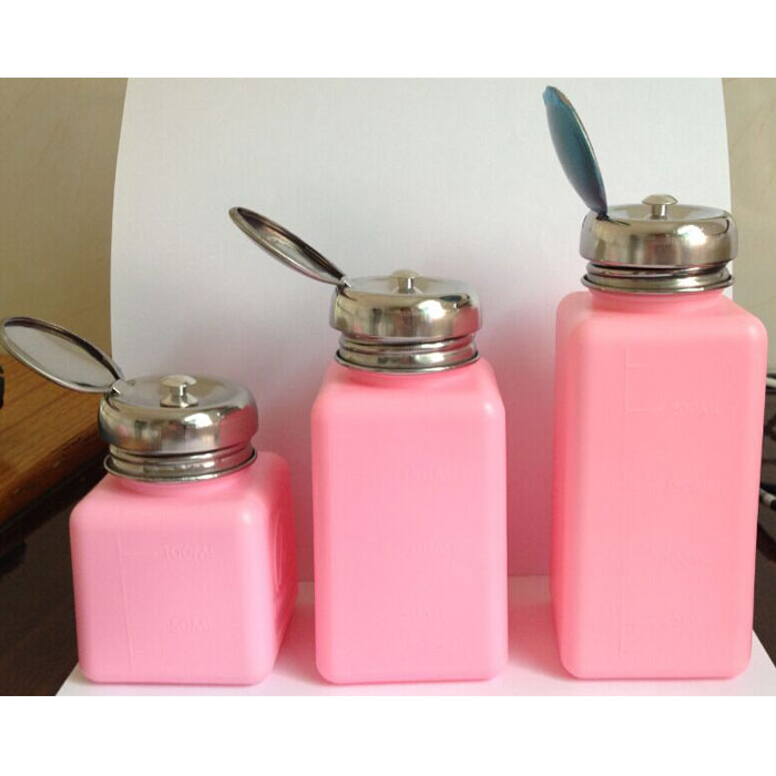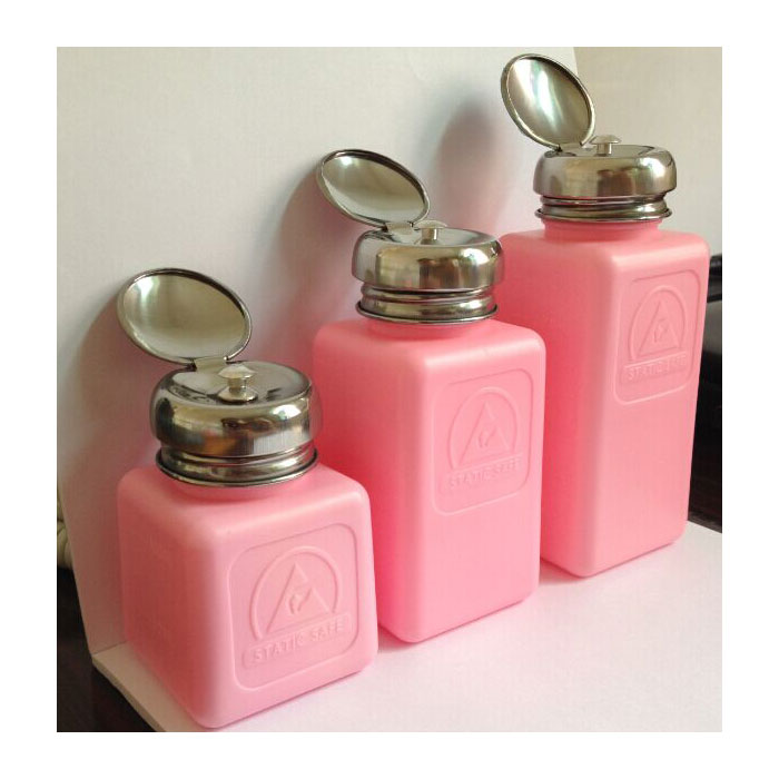 Antistatic Dispenser Bottle is designed to dispense liquid applied with a swab, wipe or cotton ball. The Antistatic Dispenser Bottle is available with stainless steel parts to facilitate the use of aggressive solvents.