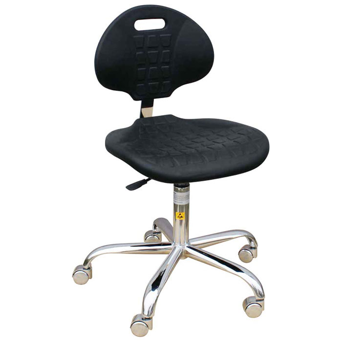 ESD control seating dissipates charge from the user by providing a conductive path from the portion of the body that is in contact with the chair to ground.