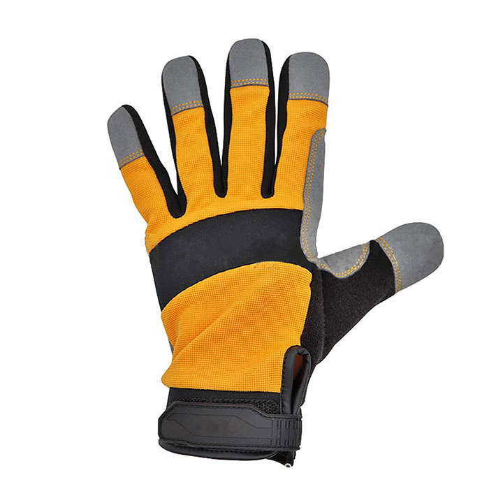 High-Visibility Mechanic Gloves are manufactured from comfort-enhancing spandex at back and synthetic leather at palm. Neoprene knuckle and wrists for impact protection and deliver maximum dexterity. Multi-zone palm padding absorbs impact and vibration. Reinforced fingertips and thumb crotch add toughness. Touchscreen compatible index finger. Terrycloth sweat wipe is conveniently located on the back of the thumb to prevent sweat irritation. Velcro closure for best fit These gloves are used widely in oil production, petrochemical industry, mining industry, machinery, gardening and construction…etc.